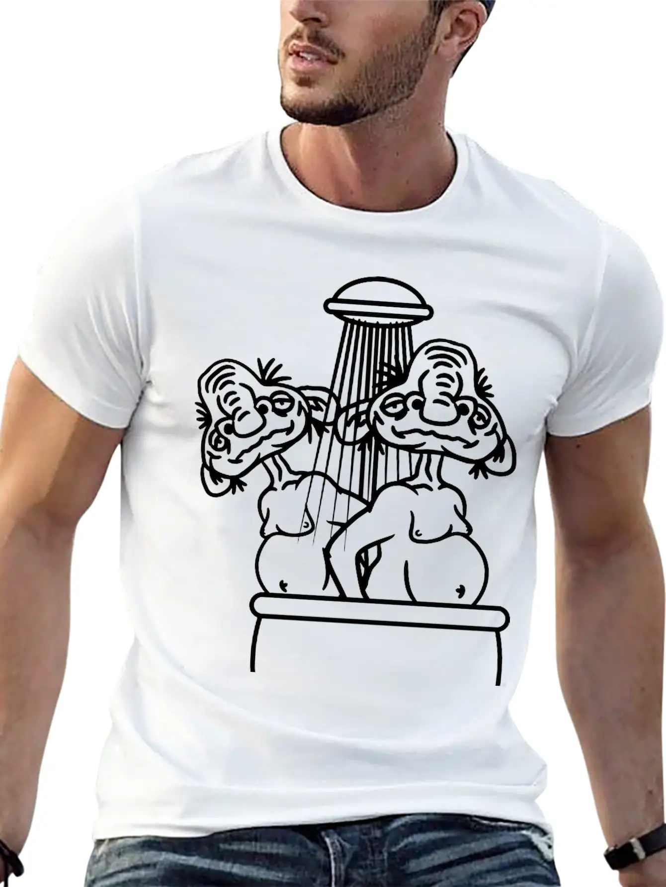Bathing 2 Old Opas Shower Bath Shower Wash Naked M Essential Cotton Tee For Daily Outfits ¨C Unisex Style