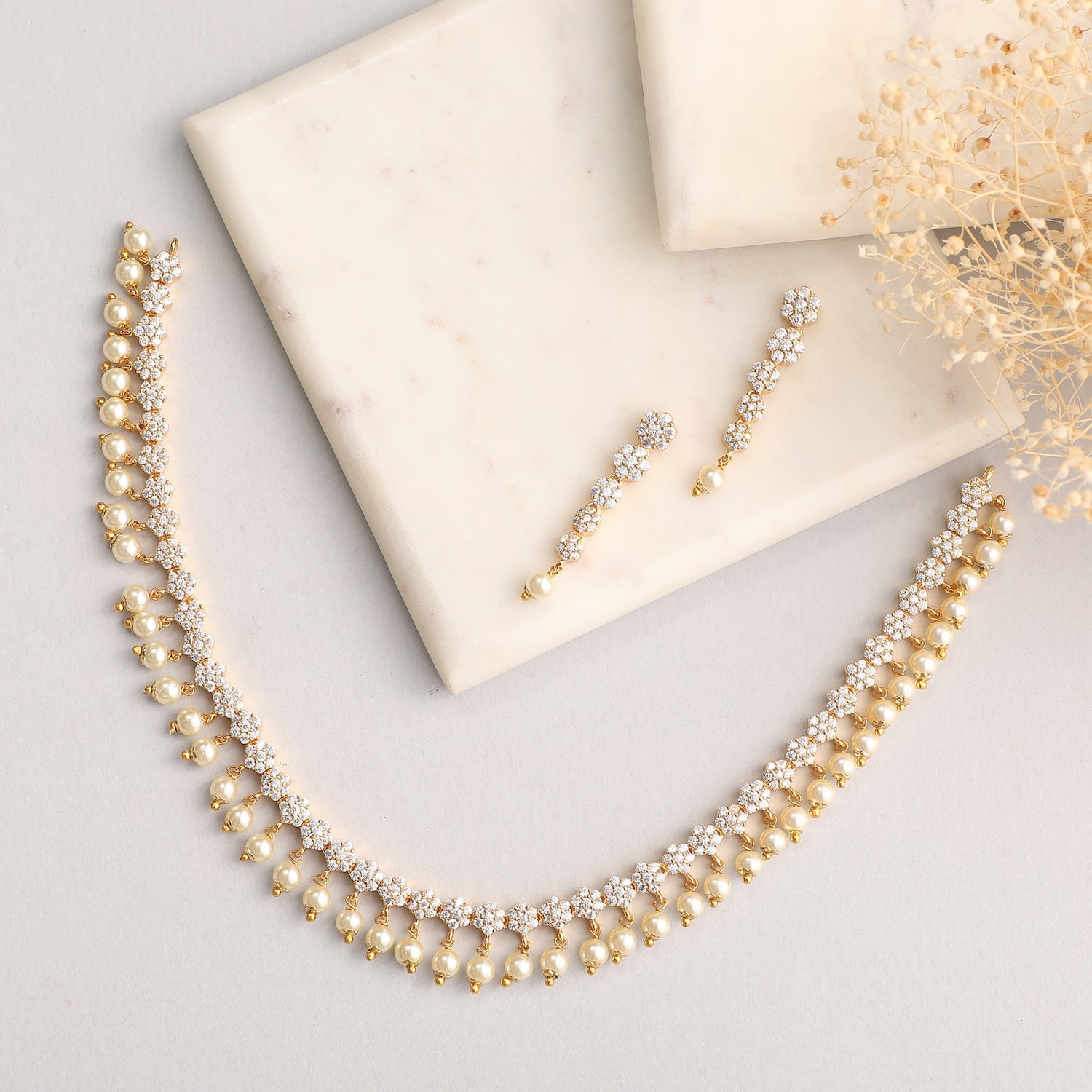 A classic pearl necklace by Tarinika will be your next favorite piece. It is crafted with high quality CZ stones and pearls. The minimal sleek look will add the shine wherever you go.