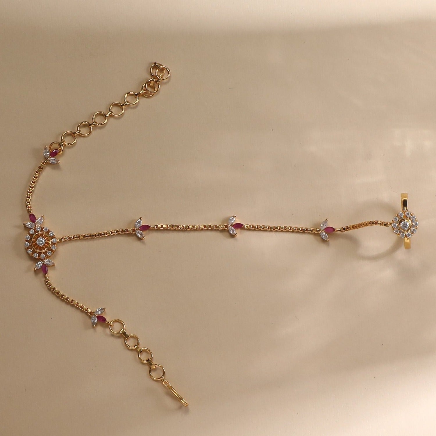 Spice up any outfit with this new accessory, combining bracelet and ring with CZ stones for that classic sparkle on the hand. Timeless glam. Pair with Tarinika earrings for an on-trend festive look.