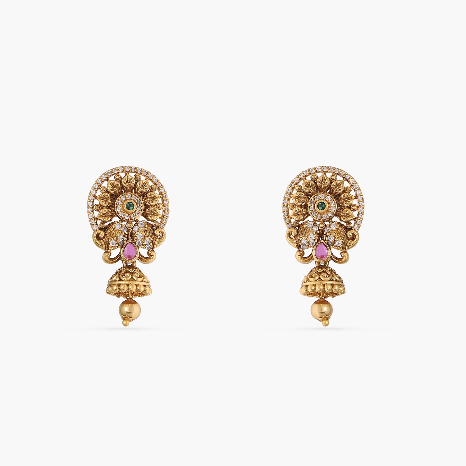 Shauri is a short necklace made to reflect the rich heritage of India's glorious past. Handcrafted in antique gold, this bold necklace features traditional Indian floral motifs and semi-precious CZ stones. A jewelry design that is as stately as it is striking!